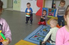 В первой младшей группе «Малыши» воспитанники в адаптационный период совместно с воспитателем в режимные моменты учатся играть в коллективе дружно. Воспитатели применяют различные дидактические и активные игры для сенсорного развития детей.