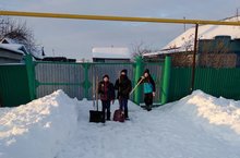 Укучылар укытучы җитәкчелегендә һәр атнада сугыш ветераны һәм сугыш чоры балаларында булып, аларга кар көрәүдә, йорт эшләрендә булышалар.