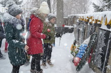 После учащиеся посетили памятник "Памяти павших за Отечество" в центре села, возложили цветы. -