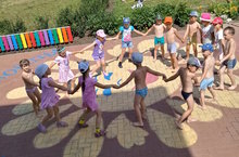 Дошколята вместе с клоуном Кешей с удовольствием участвовали в эстафетах и играх с обручем.как обычно победила "Дружба". Дети получили заряд бодрости и хорошего настроения.