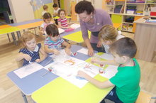 Идет подготовка к республиканскому конкурсу "Воспитатель года". Наталья Хаимовна показывает свое занятие перед своими коллегами.