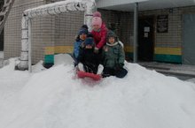 Совместно с родителями создали снежные фигуры и горку для детей 13.12.2016