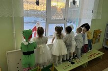 Сегодня по детскому саду прошёл слух: "Дед Мороз идет!". Дети прильнули к окнам и увидели долгожданного гостя. Сколько было радости на лицах и удивления когда он помахал детям рукой.