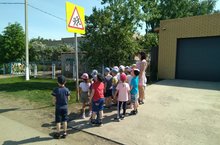 Дети разновозрастной группы изучают знак "Осторожно дети!"