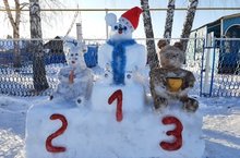 В рамках районного конкурса "Новогодняя сказка" территорию детского сада оформили снежными фигурами.
