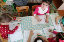 -продолжать учить аккуратно намазывать клеем пользуясь салфеткой,