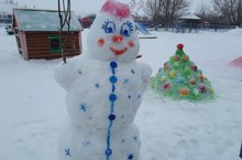 "Снежная сказка" нашего участка. В этом году по традиции к нам пришли в гости Дедушка Мороз и Снегурочка. А также Снеговик-почтовик, Колобок, Белая Крыса.