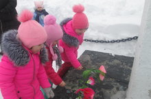 Якташыбыз Советлар Союзы Герое Нурми Шарипов һәйкәленә чәчәкләр салу.