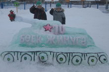 Наша память о войне - в книгах, картинах, кинолентах, мемориалах и монументах - дань всенародного уважения и признания подвига героев, отстоявших в разное время честь и независимость Родины. И мы воспитатели, воспитанники детского сада «Акчэчэк», выражая свою огромную благодарность за мирное небо и счастливое детство, создали снежную композицию.