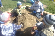 Совместными стараниями ребята смогли показать не только технические умения: работу с мокрым и влажным песком, но и творческие умения: придумывание сюжета постройки, использование в работе природного и бросового материала.