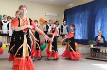 По сложившейся в нашей школе традиции ученики торжественно поздравили с 55-летним юбилеем учителя иностранного языка и истории Ахметшину Ч.А.