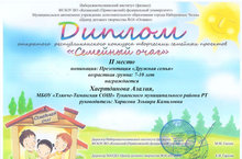 На базе МАУДО г. Набережные Челны в «Центре детского творчества № 16 «Огниво» прошел Открытый республиканский конкурс творческих семейных проектов «Семейный очаг». Конкурс проводился в рамках реализации в Российской Федерации программы «Десятилетие детства». Из нашей школы в этом конкурсе приняла участие и заняла 2 место ученица 4 класса Хаертдинова Азалия с презентацией «Дружная семья». Руководитель: Харисова Э.К.