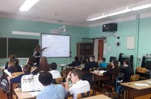 В рамках недели иностранного языка в 7 классе был проведен открытый урок на тему "Международный компьютерный лагерь" (учитель англ. языка - Ахметшина Ч.А.). Урок прошел в интерактивной форме. Ребята смотрели видео, слушали текст, отвечали на вопросы, рассказывали о своих пребываниях в лагерях.