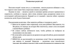 Памятка для родителей "Как защитить ребенка от падения из окна" 05.07.2023