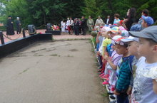 Наши дети старших групп принимали участие в митингк, посвященному дню памяти и скорби, возложили цветы.