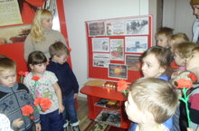 Наши дети подготовительной группы посетили музей "Патриот", работники библиотеки провели с ними экскурсию по музею, некоторые дети увидели фотографии своих дедов и прадедов, также детям разрешили одеть военные каски и пилотки. Директор клуба Тамара Егорвна показала детям фотографии и обьяснила , что сегодня День снятия блокады с Ленинграда, на доступном детском языке объяснила, что это значит. Дети возложили цветы -гвоздики.