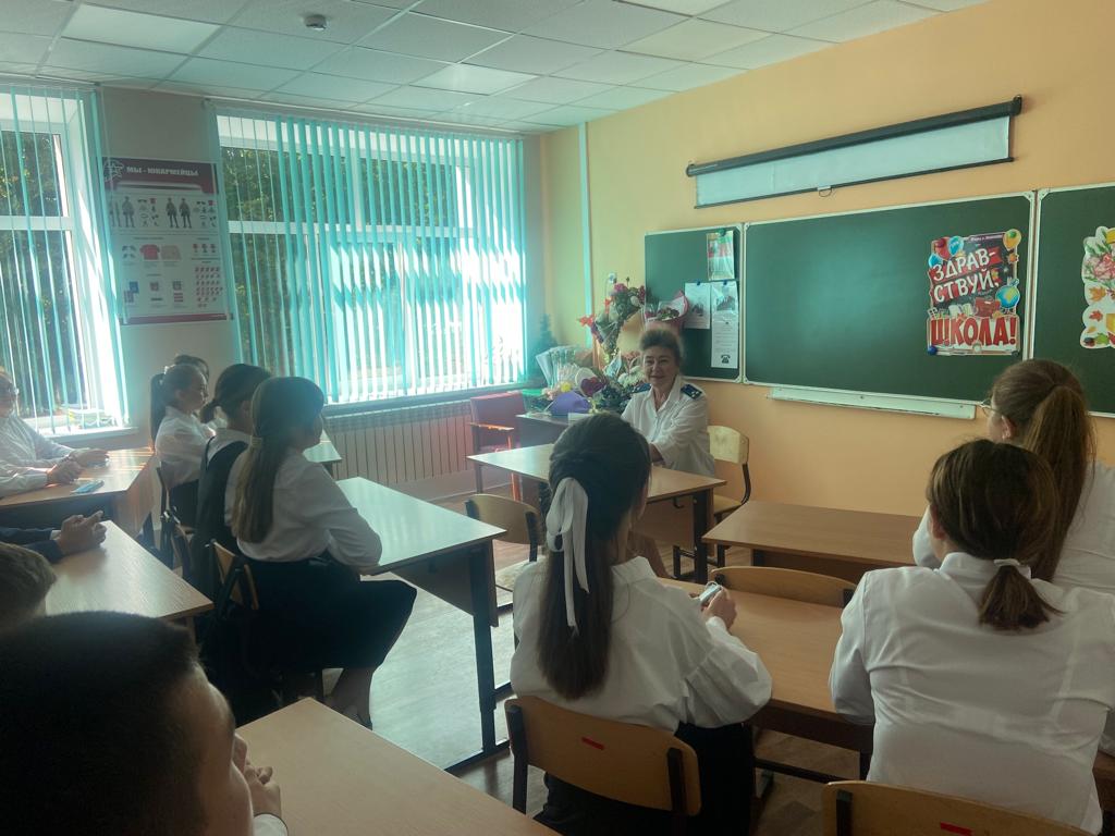После торжественной линейки прошли классные часы, Прокурор Тюлячинского муниципального района, старший советник юстиции Сабирзянова Нурия Нургаязовна провела беседу с учащимися 9-11 классов.