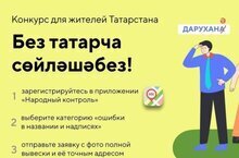 Татар телендәге элмә такталарда һәм мәгълүмати табличкаларда хаталарны ачыклауга җәлеп итү бәйгесенә барыбыз да кушыла ала. 1-нче сентябрьгә кадәр уза торган бәйге Татарстанның дәүләт хезмәтләре порталында теркәлгән һәр кешесе катнаша алачак.
