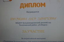 Участие во Всероссийской викторине"Пожарная безопасность" для дошкольников и младших классов 04.05.2016