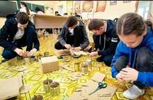 Ученики Тюлячинской школы вместе с наставником делают окопные свечи для бойцов на передовой. В течение года они отправили более 2000 свеч вместе с гуманитарным грузом от района.