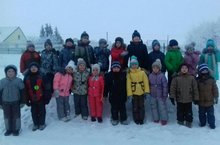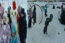 Бүген мәктәпкәчә яшьтәге балаларыбыз белән бергәләп саф һавада Кар бабай ясадык.