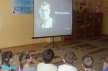 3нче балалар бакчасында мәктәпкәчә төркем балаларына бүген 15 февраль - Советлар Союзы Герое, патриот шагыйрь Муса Җәлилнең туган көненә һәм иҗатына багышланган тематик әдәби әңгәмә узды, шагыйрьнең әсәрләре буенча презентация дә күрсәтелде.