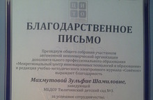 Благодарность заведующей 01.01.1970