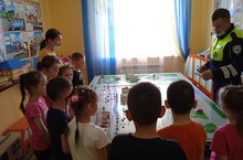 Бүген Россия Эчке эшләр министрлыгының Теләче районы буенча ЮХИДИ бүлекчәсе начальнигы полиция капитаны Назиров Р.Х. балалар бакчасына чираттагы тапкыр юл хәрәкәте кагыйдәләрен үтәү мөһимлеген искә төшерер өчен килде.