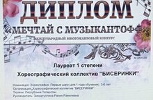 "Бисеринки" хореография коллективы "музыкант белән хыял" дип исемләнгән халыкара күпжанрлы конкурста хореографиядә беренче адымнар номинациясендә катнаштып 1 дәрәҗә лауреат дипломына ия булдылар.