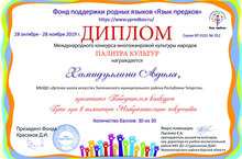 - 28 ноября 2019 года учащиеся художественного отделения участвовали в Международном конкурсе многожанровой культуры народов ПАЛИТРА КУЛЬТУР (Курская область). Хамидуллина Адиля признана победителем конкурса Гран при, Хамидуллина Камиля дипломантом в номинации «Изобразительное искусство».