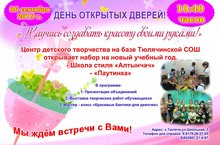 6 сентября педагог дополнительного образования Центра детского творчества Галимзянова Фания Габдлхаковна, на базе Тюлячинской средней общеобразовательной школы, организовала «День открытых дверей» для родителей и обучающихся.