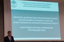 В период с 22- по 23 ноября директор МБУДО «Центр детского творчества» Махмутова З.Ш. на базе МБОУ «Многопрофильная полилингвальная гимназия №180» проходит обучение для руководителей, заместителей образовательных организаций муниципальных районов и городских округов Республики Татарстан, ответственных за антикоррупционную работу по теме: «Коррупция: причины, проявления, противодействие».