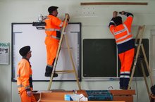 Во время весенних каникул в Тюлячинской средней школе работали специалисты компании "Таттелеком" : они выполняли техническую подготовку к ЕГЭ-2015 помещений для проведения экзаменов.