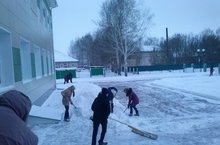 После обильного снегопада ученики нашей школы очищали территорию школы от снега.