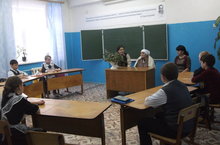 24 февраля В Саушской СОШ прошел «Урок мужества». 5-6 классы в этот день пригласили в гости труженика тыла – Билалову Фанзию.