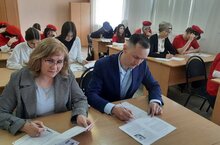 Сегодня в Тюлячинской средней школе на базе "Точка роста" написали "Диктант Победы". В этой акции вместе с учениками, приняла участие начальник отдела образования Карпова Наталья Владимировна и директор школы Хафизов Айнур Фирдавесович.