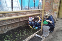 На пришкольном участке нашей школы начались весенние работы. В теплицу высажены помидоры, огурцы, болгарский перец.