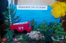 Декоративно-прикладное творчество – Шарипова Камила (макет «Берегите лес от огня!»