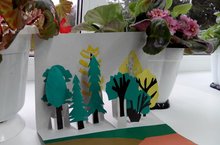 3 сыйныф укучылары сары алтын көзне сүрәтләп кәгазьдән ландшафтлы открытка ясадылар.