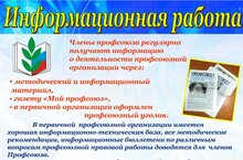 Сегодня уже никого не нужно убеждать в том, что информационная работа является одним из необходимейших условий деятельности профсоюзных организаций Поэтому наша главная задача – обеспечение оперативного информирования работников образовательного учреждения о деятельности организации – о том, чем живет профсоюз, что он делает для того, чтобы эффективно выполнять свою главную – защитную, функцию.
