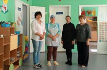 27 сентября - день работников дошкольного образования. В честь этого дня учащиеся начальных классов с учителями и с советником директора по воспитательной работе сходили в детский сад и поздравили воспитателей. Пожелали им здоровья и успехов в работе.