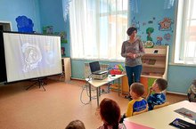 С детьми нашего детского сада в день празднования Дня Космонавтики, прошел познавательный час , целью которого было ознакомление дошкольников с космосом, расширение представления детей о космических планетах и знакомство первым космонавтом нашей страны с Юрием Гагарином