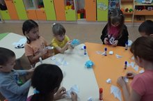 Наши дети старшей и подготовительной группы уже начали готовить красивые украшения для оформление группы. Вместе с воспитателем Зиннатуллиной З.Р. сделали из бумаги 3Д снежинки.