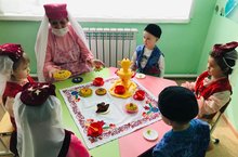 Бүген, 7 апрель көнне Иске Җөри авылы китапханәчесе Гильмутдинова Р. Ш.безнең коллективны кунакка чакырды һәм бакчабыз педагогы Галиуллина А. Н. белән берлектә мәктәпкәчә яшьтәге балалар белән танып-белү әңгәмәсе үткәрде, бергәләп татар халкының гореф-гадәтләре һәм борынгы әйберләрнең билгеләнеше турында сөйләделәр, балалар белән бергә әбиләребезнең осталыгына сокландылар. Аннан соң, балалар зур теләк белән"Түбәтәй" татар милли уенында катнаштылар. Балалар бик канәгать калдылар.