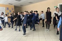 Под зажигательную музыку ребята и учителя вместе выполнили комплекс упражнений, получили заряд бодрости и отличного настроения на весь учебный день.