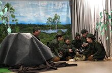 Учащиеся 9 класса, родитель (Котельников Дмитрий), учитель (Фахрутдинова А.Х.) под руководством учителя истории и обществознания Хасаншинов В.М. показали театрализованый отрывок из произведения "А зори здесь тихие".