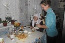 Тимурчылар отряды членнары педагог-организатор Гинатуллина Г.Н. җитәкчелегендә ялгыз әбиләргә барып йорт эшләрендә булышалар. 7 сыйныф укучысы Мубаракзянова Фирсинә ветеран укытучыбыз Галявиева Гөлниса апа янында.