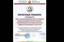 Наша школа награждена Почетной грамотой Министерства информатизации и связи "За активное внедрение в педагогическую практику информационных технологий и эффективную работу в информационной системе "Электронное образование в Республике Татарстан", также ценными подарками.