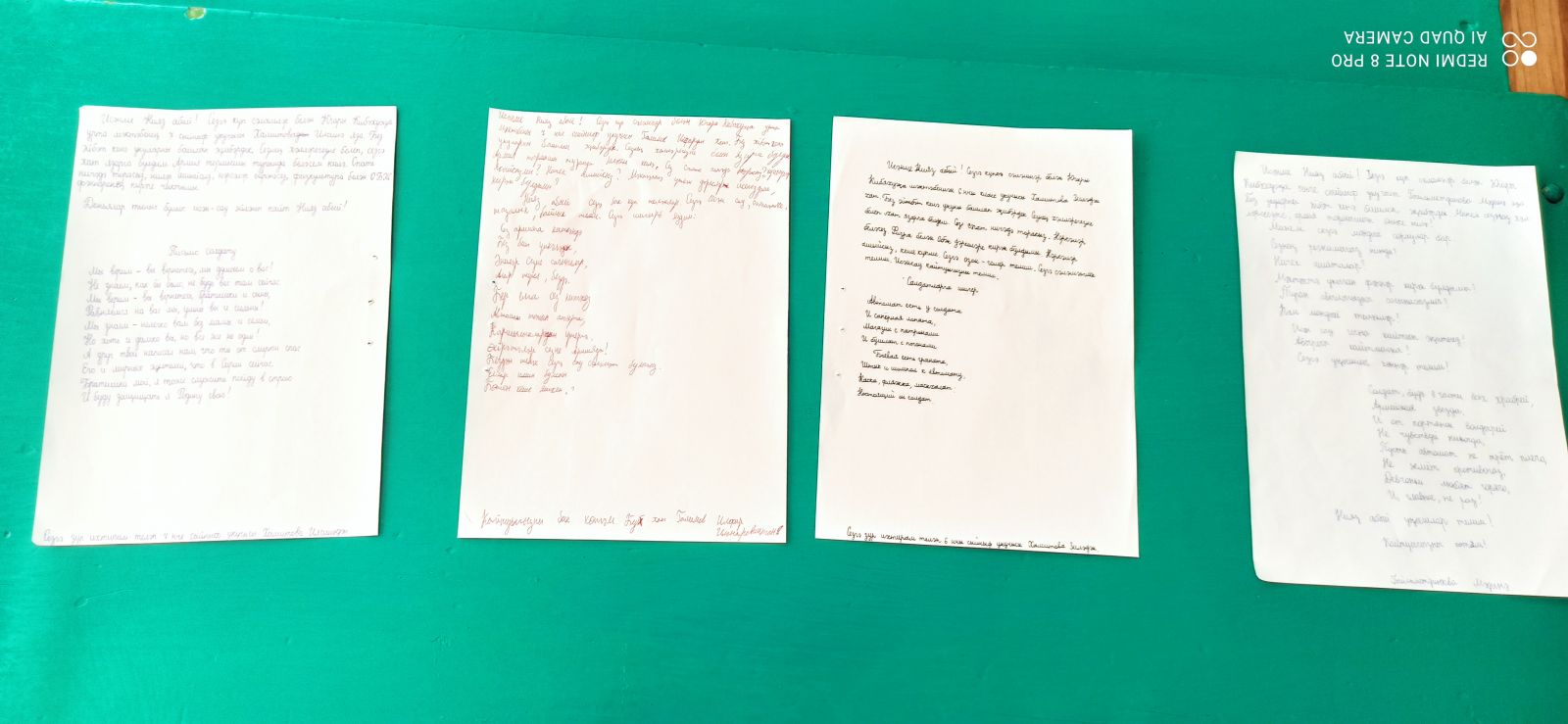 Кече Кибәхуҗа төп мәктәбенең 5 сыйныф укучылары сыйныф җитәкчесе Арсланова И.М. белән берлектә “Солдатка хат” акциясендә катнаштылар. Алар мобилизацияләнгән авылдашыбыз Нәбиуллин Рөстәм абыйларына хат яздылар, аңа нык сәламәтлек һәм илебездә тынычлык урнашып тизрәк әйләнеп кайтуын теләделәр.