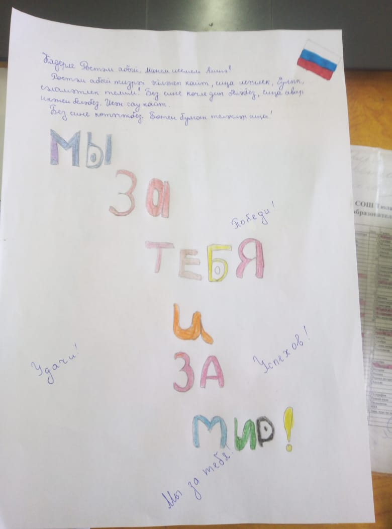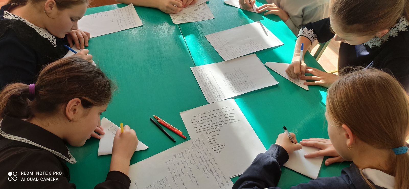 Учащиеся 5 класса Малокибякозинской основной школы вместе с классным руководителем Арслановой И.М. приняли участие в акции «Письмо солдату». Он написали письмо мобилизованному земляку Набиуллину Рустаму, пожелали крепкого здоровья, мирного неба и скорейшего возвращения.